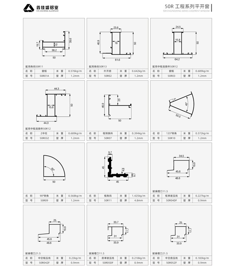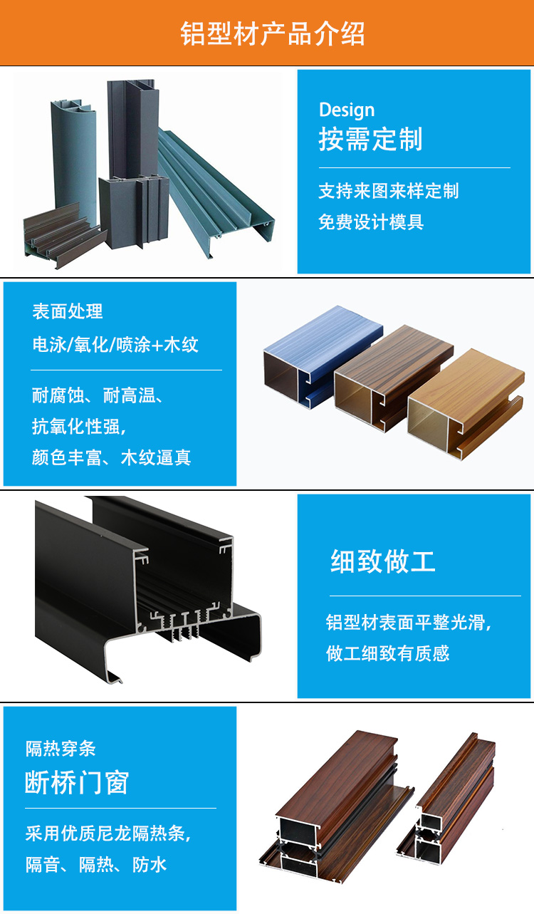 鑫佳盛生產(chǎn)的鋁合金建筑型材產(chǎn)品具有強(qiáng)度高、重量輕、耐腐蝕、裝飾性好、使用壽命長(zhǎng)、色彩豐富等優(yōu)點(diǎn)。